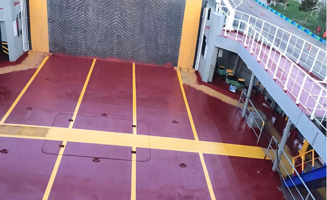 Sırasıyla Kabatepe İskelesi’ne bağlanan ve burada bakıma giren iki gemide yolcu salonları, araç ve yolcu güverteler, gemi tuvaletleri, oturma grupları, zeminler, gemi rampa kapağı, gemi bordası boyandı, eksikleri giderildi ve komple bakımdan geçirildi.