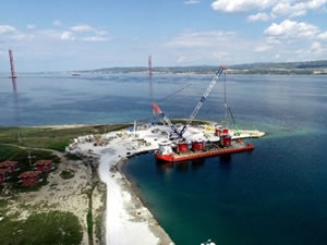 Korona virüs (Covid-19) salgını ile mücadele devam ederken, Türkiye’nin tarihi ve önemli vizyona sahip olan 1915 Çanakkale Köprüsü projesinin ayaklarındaki çalışmalarda sona doğru gelindi. Dünyanın en büyük asma köprüsü unvanına da sahip olacağı ifade edilen köprünün ayakları 318 metrelik uzunluğuyla 18 Mart Çanakkale Deniz Zaferi’ni simgeliyor.