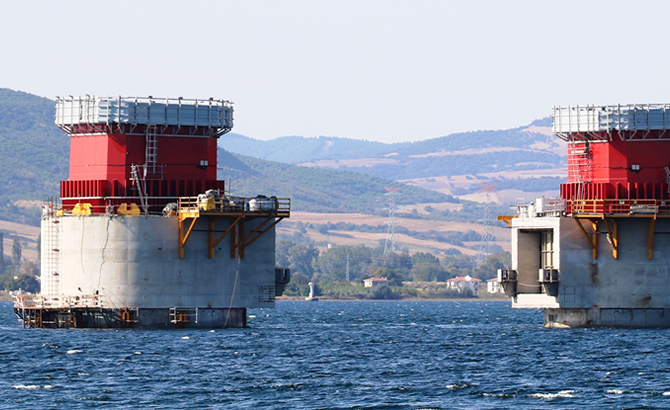 Lapseki tarafındaki köprü ayağının bağ kiriş montajının da yapılmasının ardından her birinin ağırlığı 800 ton olan kule bloklarının üst üste konulması işlemine geçilecek.