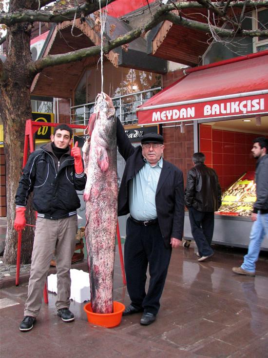 Yavuz Selim Meydanı'ndaki bir balıkçı tezgahında teşhir edilen yaklaşık 2 metre boyunda ve 82 kilo ağırlığındaki yayın balığı, çevreden geçenlerin ilgisini çekiyor. İş yeri sahibi Şadi Eftelioğlu, Taşova ilçesi yakınlarında beraberindeki 2 arkadaşıyla birlikte yakaladıkları balığı uzun uğraşlar sonucu kıyıya çekmeyi başardıklarını söyledi. Bu büyüklükteki balığın nadiren yakalanabildiğini ifade eden Eftelioğlu, lezzetiyle bilinen balığın kilosunu 15 TL'den satışa sunacaklarını kaydetti.