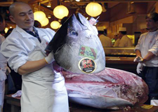 Japonya Tokyo'daki dünyanın en büyük balık pazarında düzenlenen yılın ilk açık artırmasında 222 kilogram gelen ton balığı 1,38 milyon euroya satıldı.