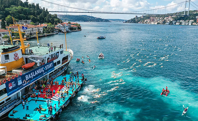 Gençlik ve Spor Bakanı Mehmet Muharrem Kasapoğlu'nun startını verdiği ve sporcuların İstanbul Boğazı'nı serin sularında mücadele verdiği yarışın tamamlanması yaklaşık 1,5 saat sürdü.