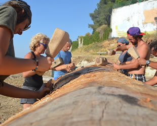 Alper, çalışma hakkında “Araştırma konusu olan tarihlerin Batı Anadolu için Neolitik Dönem olarak, popüler tanımıyla da Cilalı Taş Devri olarak bilinmektedir. Projemizin ilk etabında, o dönemde Anadolu kıyıları ile Ege Adaları arasında denizcilik faaliyetleri yapıldığına ilişkin verilere dayanarak bu faaliyetlerin nasıl yapıldığına, ne tip deniz araçları kullanıldığına ilişkin teorik tezler inceledik. Bu tezlerden biri olarak ağaç tomruğunu dönemin teknikleri ile kano haline getirmek ve kanonun o çağlarda deniz ticaretinde kullanıldığını doğrulamak ve denizde kullanılırlığını deneyimlemek oldu. İnsanların kütüklerin üzerinde yolculuk ettiğine ilişkin fikirler vardı. Bunun doğru olmadığını ilk denememizde gördük. Önce ham tomruğu suya attık, üzerinde kürek çekmek mümkün değildi. O dönemde obsidyen veya çakmaktaşı dışında tekne yapımında kullanılacak malzeme yoktu. Taş aletlerle kütüğü işlemek için yakma tekniğini uygulamaya başladık. Kayın ağacı kütüğünün içinde kontrollü ateş yakarak köz sönmeden ucuna keskin taşlar bağlanan baltalarla oyma işlemine geçtik. Ateşi orta kısımda yakıp kenarlara aktardık, fazla yandığını düşündüğümüz yerleri kazıdık ve suyla soğutarak kontrol ettik” dedi.