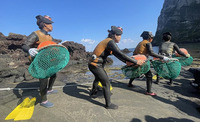 UNESCO Dünya Mirası Listesi'nde de yer alan Haenyeolar, deniz altından topladıkları kabuklu canlıları karada turistlere satarak geçimlerini sağlıyor.