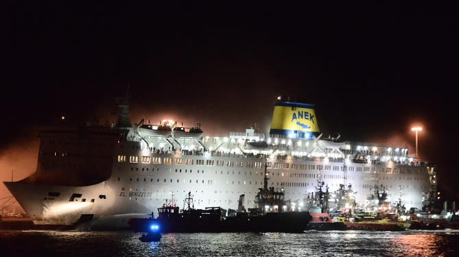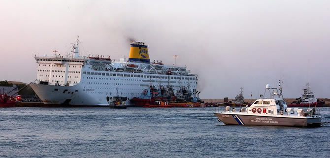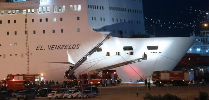 Yunanistan'da 875 yolcusu bulunan Girit Adası'na seyreden Eleftherios Venizelos isimli Ro-Ro gemisinde yangın çıktı.