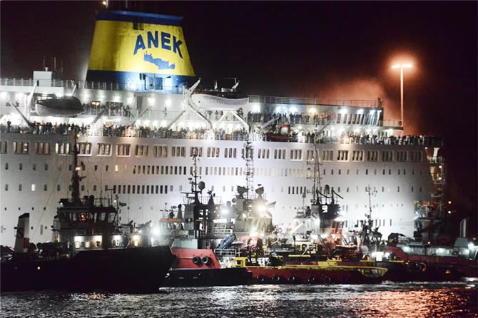 Yangın dün gece saat 23.30'da Hydra'dan ayrılırken başladı. Yaklaşık bir buçuk saat boyunca, 141 mürettebat üyesi 875 yolcuyu karaya çıkarmak için çalışıldı. Ardından gemi Pire Limanı'na demirledi.