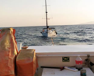 Ekipler, 3 kişi ile akıntıyla sürüklenen tekneyi Karataş Limanı'na getirdi.