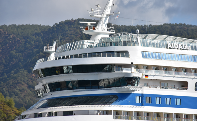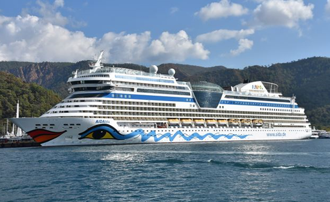 İtalya bayraklı kruvaziyer "Aida Blu", 2 bin 38 yolcusuyla bu yıl ilk kez Muğla'nın Marmaris ilçesine geldi.