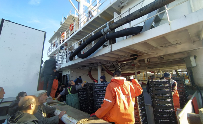 Balıkçıların limanda bekleyen kamyonlara yüklediği hamsi dolu kasalar, çevre illere gönderildi.