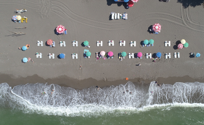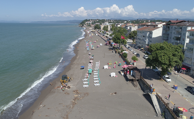 Ekipler plajın bir kısmında temizlik çalışmalarını sürdürürken, vatandaşlar plajın diğer tarafında denize girdi. Selin izlerinin silindiği Akçakoca ilçesindeki plaj havadan görüntülendi.