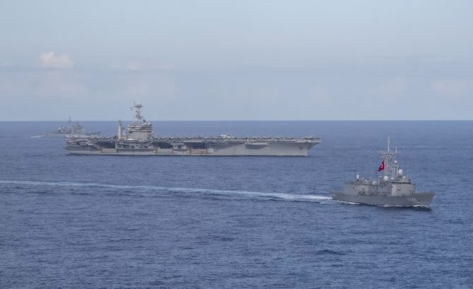Milli Savunma Bakanlığı’ndan yapılan açıklamada, "Türk Deniz Kuvvetleri tarafından, Doğu Akdeniz’de deniz güvenliğinin sağlanması maksadıyla Akdeniz Kalkanı Harekatı’na kesintisiz ve etkinlikle devam edilmekte, ayrıca bölgeye intikal eden NATO ve müttefik savaş gemileri ile her fırsatta karşılıklı eğitimler icra edilmektedir. Bu kapsamda, Türk Deniz Kuvvetlerinden TCG GAZİANTEP VE TCG GEDİZ fırkateynlerinin katılımıyla, ABD’nin USS HARRY S.TRUMAN Uçak Gemisi Muharebe Grubu ile 11 Aralık 2019 tarihinde Doğu Akdeniz’de temel deniz harp nevilerine yönelik eğitimler icra edilmiştir.” denildi.