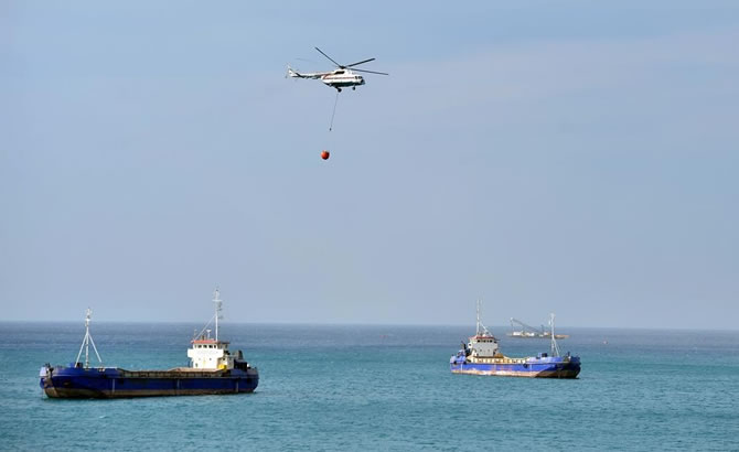 Ormanlık alanda elektrik direğinin devrilmesi sonucu çıkan yangına da denizden su alan helikopter ve Orman Bölge Müdürlüğünün ekipleriyle müdahale edildi.