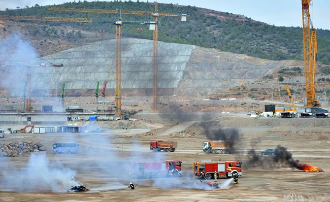 Gülnar ilçesine bağlı Büyükeceli Mahallesi'nde yapımı devam eden santralde, Enerji ve Tabii Kaynaklar Bakanlığı ile Akkuyu Nükleer AŞ tarafından "Ortak Kurumlar Acil Durum Tatbikatı" yapıldı.