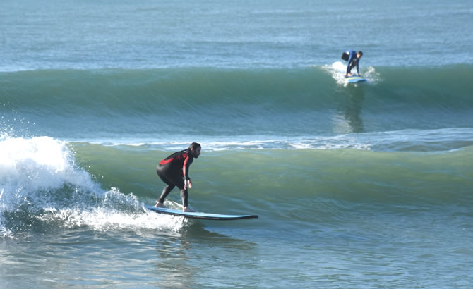 Deniz suyu ve hava sıcaklığının 18 derece ölçüldüğü, dalga boyunun 3 metreyi bulduğu ilçede, güneşli havayı fırsat bilenler sahilde zaman geçirdi. Alanya'da bir grup sörfçü de Oba Plajı'nda sörf tahtalarıyla kendilerini dalgalara bıraktı.