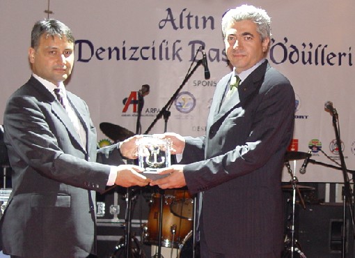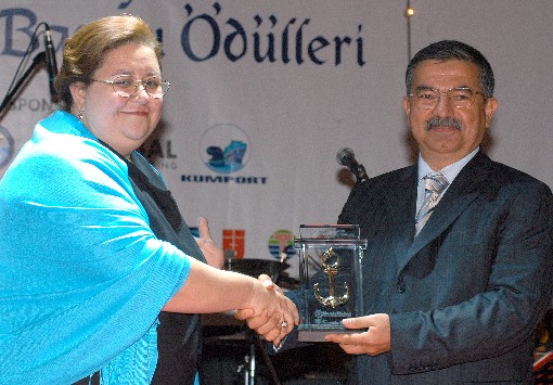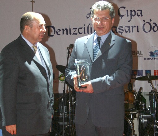 Türk Armatörler Birliği Başkanı Şadan Kalkavan'a ödülünü Başbakanlık Denizcilik Müsteşarı İsmet Yılmaz verdi.