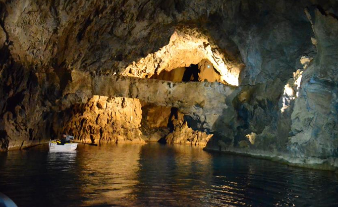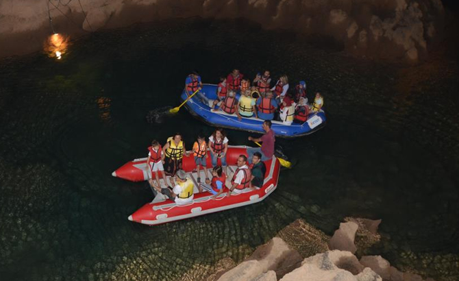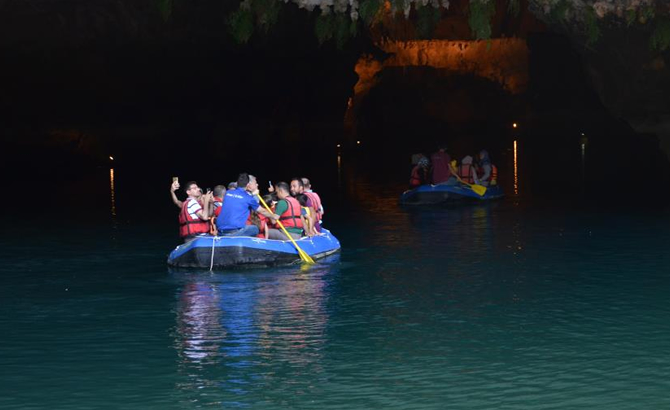 Su derinliğinin bazı yerlerde 40 metreyi bulduğu mağaraya gelen turistler, etkileyici doğa oluşumunu kiraladıkları botlarla görme imkanı yakalıyor.