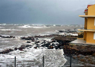 Balıkesir’in Ayvalık ilçesine bağlı Altınova beldesinde, şiddetli lodosun yol açtığı dalgalar nedeniyle 5 yılda sahilin 50 metresinin yok olduğu belirtildi.