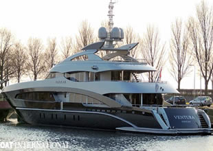 Bu etkili yarı deplasmanlı yat ikiz 2,720 KW gücündeki motorlarıyla 22,5 knotluk azami hızına çıkabiliyor ve 11 knot hızda 3,200 deniz milini sorun yaşamadan aşabiliyor. Ventura sahibine deneme seyri bittikten sonra teslim edilecek.