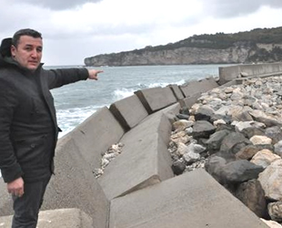 Tarlaağzı Gömü Köyleri Su Ürünleri Kooperatifi Başkanı Tayfun Uça, fırtınalı havalarda mendirekteki yıkımın ara ara devam ettiğini söyledi.