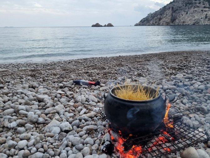 Bozkurt, Ceneviz Koyu'nda suları bitince, yiyecekleri son makarnayı deniz suyu ile pişirdiklerini anlattı.