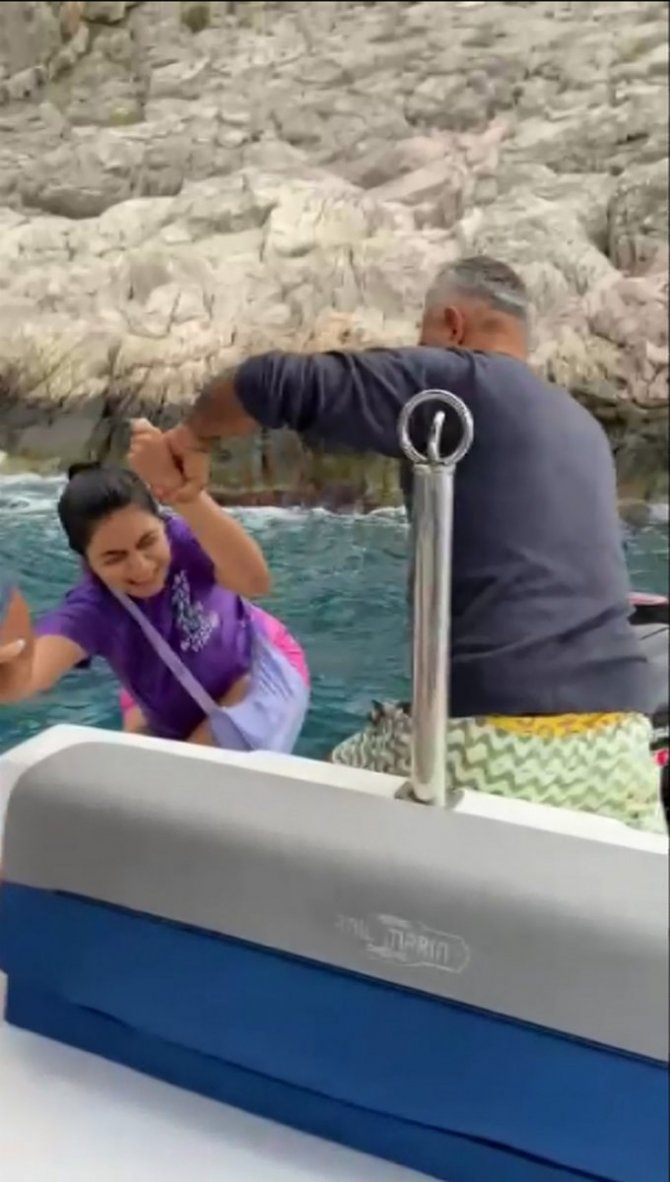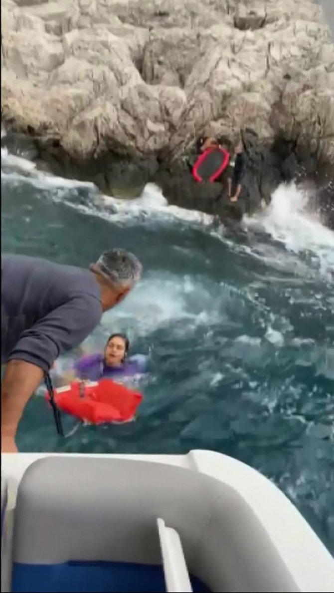 Hafta sonu tatili sonrası koydan ayrılmalarının ardından fırtınaya yakalanıp tekneleri alabora olan Bozkurt ve arkadaşları, yardıma gelen tur teknesi çalışanları tarafından mahsur kaldıkları kayalıklardan kurtarıldı.