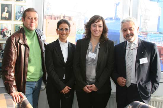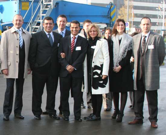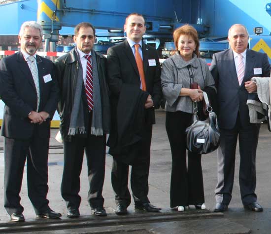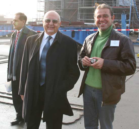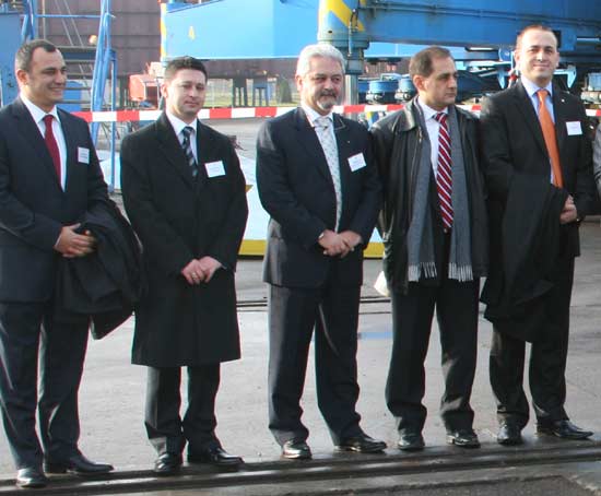 Arkas Holding üst düzey yöneticileri Wolgast şehrinde bulunan Peene Werft Tersanesi'nde yapılan törene tam kadro katıldı. (Soldan sağa: Aret Taşçıyan, İbrahim Kontaytekin, Savaş Ercan, Ayla Pekar ve Timuçin Pekar)