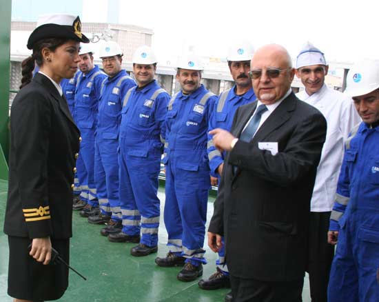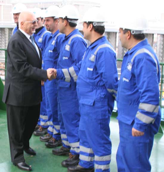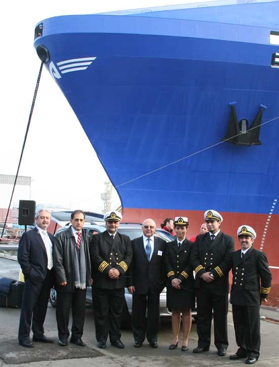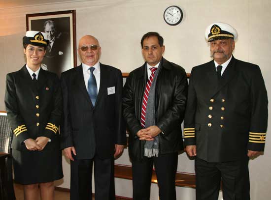 Arkas Yönetim Kurulu Başkanı Lucien Arkas, gemi süvarisi ve ekibiyle birlikte...