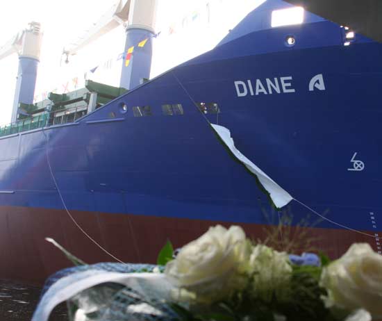 Diane Arkas, kızkardeşinin adını taşıyan gemiyi teslim alırken, şampanyayı kırarak "VİRA" dedi.