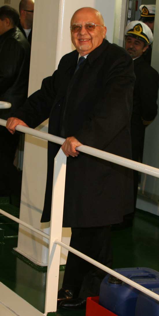 Lucien Arkas, oğlu Bernard Arkas ile birlikte tören sonrası gemiyi gezerken büyükbir onuru birlikte paylaştılar.