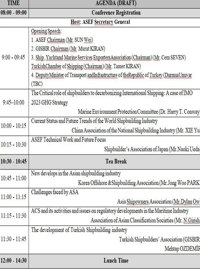 GİSBİR (Türkiye Gemi İnşa Sanayicileri Birliği) ev sahipliğinde, ASEF (Asia-Europe Foundation) Genel Kurulu ve SEA Europe’un (Gemi İnşa ve Deniz Ekipmanları Birliği) Yönetim Kurulu toplantısı ilk kez Türkiye'de gerçekleşecek.
