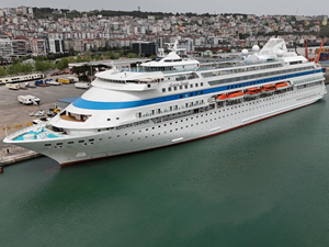 Samsun Limanı'na demirleyen gemideki 898 yolcu ile 438 kişilik mürettebat, liman görevlilerince karşılandı.