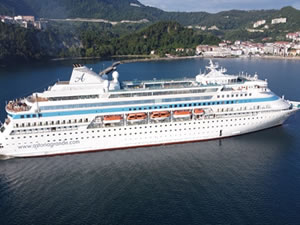 İstanbul'un ardından Amasra Limanı'na yanaşan 470 mürettebatı bulunan Panama bandıralı geminin yolcularını, Belediye Başkanı Recai Çakır ve diğer ilgililer karşıladı.