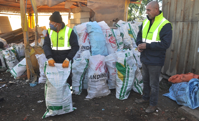Medlog Lojistik Firması Bakım Onarım Sorumlusu Tarık Bulut, “Burada firmamıza gelen konteynerların hasar tespiti yaparak hasarlılarını yenileri ile değiştiriyoruz. Hasarlı olanları da atölyemizin önünde toplayarak kesimini yapıp çuvallıyoruz. Daha sonra ise ihtiyaç sahiplerine ulaştırılmak üzere belediyemize teslim ediyoruz” dedi.