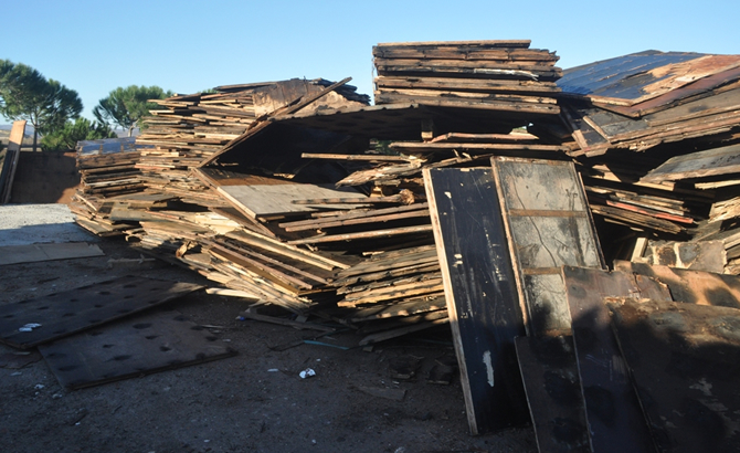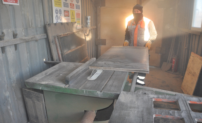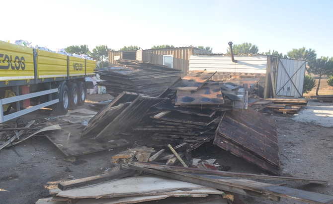 Tekirdağ’ın Merkez Süleymanpaşa ilçesinde bulunan ve Türkiye’nin en büyük transit konteyner limanı olan Asyaport Limanı’nda Türkiye’nin çeşitli yerlerinden gelen konteynerların deforme olan taban tahtaları tamir ediliyor. Tamirat sonrasında çıkarılan huş ağacından tahtalar atölyede kesilerek kullanılmış çuvallara dolduruluyor.