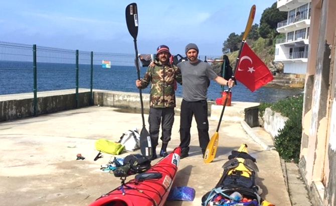 Yolculukları süresince zaman zaman fırtına nedeniyle mola vermek zorunda kaldıklarını söyleyen Özdemir, "Yolculuğumuza başlamadan Bandırma Vapuru'nun kaptanı Kayserili İsmail Hakkı Durusu'nun doğduğu yöreyi ve İstanbul'daki kabrini ziyaret ettik. Torunu Nejat Ulugöl'den aldığımız Türk bayrağını Samsun Valisi'ne teslim etmek üzere Beykoz'dan kano ile denize açıldık. 12 günlük sürede Sakarya, Düzce, Zonguldak, Bartın ve Kastamonu kıyılarını geçerek Sinop'a ulaşmayı başardık. Hedefimiz 19 Mayıs'ta Samsun'da olmak. Karadeniz'in iklim şartları bizleri yordu ama başladığımız yolculuğun manevi değeri bizleri daha çok motive ediyor" dedi.