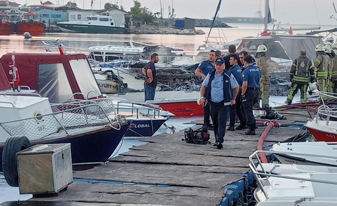 Yangına müdahale eden Hasan Taşkın, “Bizi aradılar yangın var dediler. Geldik buraya, bir baktık tekneler yanıyor. İtfaiyecilere yardım ettik. Arkadaşlarımızın teknesi. Herhalde bir kişi vardı içlerinde öyle yangın çıkarttı. 8-10 tekne yanmış. Bayağı zarar var. Sürat teknesi, yat. Özel tekneler” dedi.