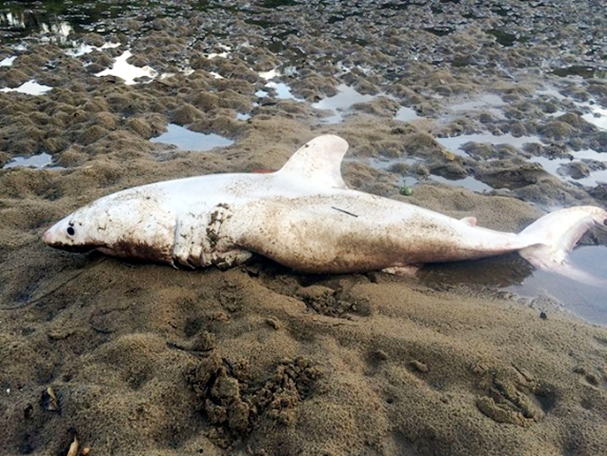 Resmi paylaşan Anslow'a göre köpek balığı kendini sahile atmadan yakın sığ sularda yüzüyürdu. Hayvanın sahildeki bedeni yetkililer tarafından inceleme için kaldırıldı. Köpek balığının niye sahile çıktığı hala bir sır.