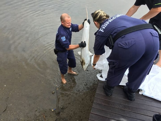 Avustralya, New South Wales'de simsiyah gözlü, beyaz bir köpek balığı sahile vurdu. Bunun genç bir büyük beyaz köpek balığı olduğu düşünülüyor.