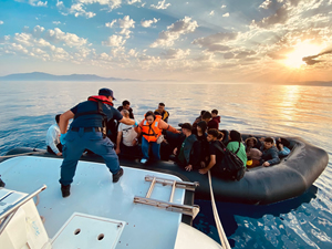 Sahil Güvenlik Komutanlığından yapılan açıklamaya göre, Kuşadası açıklarındaki lastik botta bir grup düzensiz göçmenin bulunduğu bilgisi alındı. Bunun üzerine bölgeye sahil güvenlik botu sevk edildi.