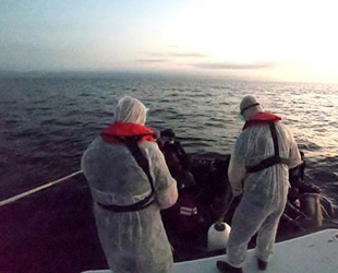 Edinilen bilgiye göre, Ayvalık açıklarında lastik botta bir grup düzensiz göçmen olduğu istihbaratını alan Sahil Güvenlik ekipleri bölgeye gitti.