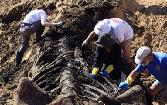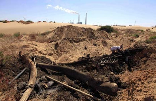 Sahilde kumların arasından çıkarılmaya çalışılan şey bir balina iskeleti. Onu gün yüzüne çıkarmak isteyenler de Haifa Üniversitesi Deniz Memelileri Araştırma Merkezi çalışanları. 2008 yılında 2 yaşındayken öldüğü sanılan dev yaratığın iskeleti tam 14 metre uzunluğunda. Araştırmacılar geçen yıl sahile gömülmüş kemikleri çıkarmak ve hakkında daha çok bilgi edinebilmek için yoğun bir çaba sarfediyor.