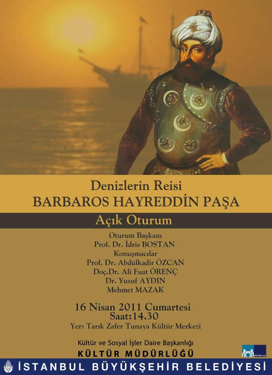 Akdeniz’in efendisinin asıl adı Hızır’dı(1467-1546). O’na Hayrettin adını, hizmetinde bulunduğu Yavuz Sultan Selim, Barbaros lakabını ise sakalının kızıla çalması nedeniyle Avrupalılar takmıştı. Yaşadığı sürede birçok zaferler kazanan Barbaros Hayrettin Paşa’yı daha iyi tanımak ve onun üzerinden dönemin tarihine ışık tutmak amacıyla düzenlenen panel İstanbul Büyükşehir Belediyesi Kültür Müdürlüğü tarafından gerçekleştirilecek.