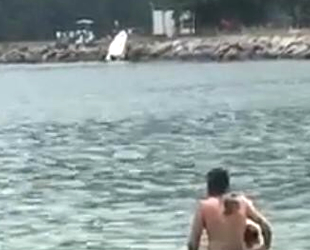 Sürücüsüz kalan tekne, şans eseri askeri alandaki limana çarparak durdu. Sahilde deniz giren vatandaşlar tarafından teknenin limana çarpma anı an be an kaydedildi.