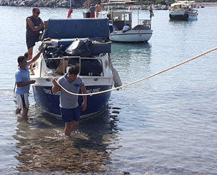 Bodrum Belediyesi’ne ait "Temiz Deniz" isimli tekneyle bölgeye giden ekipler, Adaboğazı (Akvaryum) kıyısında temizlik çalışması yaptı.