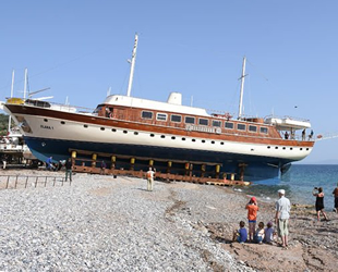Mavi yolculuklarda genellikle zengin turistlere hizmet veren ve boyları 45-50 metreyi bulan lüks ahşap yatlar, bazılarının donanımlarında yenilikler yapılıp özenle yeni sezona hazır hale getirilerek, kızaklar üzerinde Ege'nin mavi sularına indiriliyor.