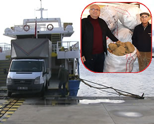 Çuvallara konulan 380 kilo sünger, Bodrum Gemi Yanaşma İskelesi'nden feribota yüklendi.