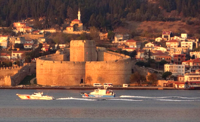 Kilitbahir Köyü Dağı'nda bulunan 'Dur Yolcu' yazısı ile Kilitbahir Kalesi önünden geçen Krajmorje Ege Denizi'ne doğru yol aldı.