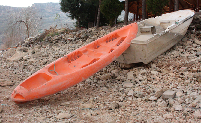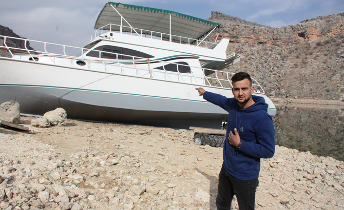 Dicle Barajı üzerinde tekne işletmeciliği yapan Ali İhsan Ok, su seviyelerinin 10-15 metre arası düştüğünü, teknelerin karaya oturduğunu söyledi.