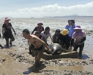 Linhay Balıkçılık Dairesi yetkililerinden Zhu Yupeng, “Kurtarma sırasında balinalardan birini denize bırakmaya çalıştık, ancak sahile vurdu" dedi.