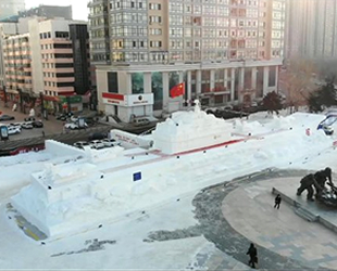 Çin'in kuzeydoğusunda yer alan Heilongjiang eyaletinin başkenti Harbin'de buzdan bir uçak gemisi inşa edildi.
